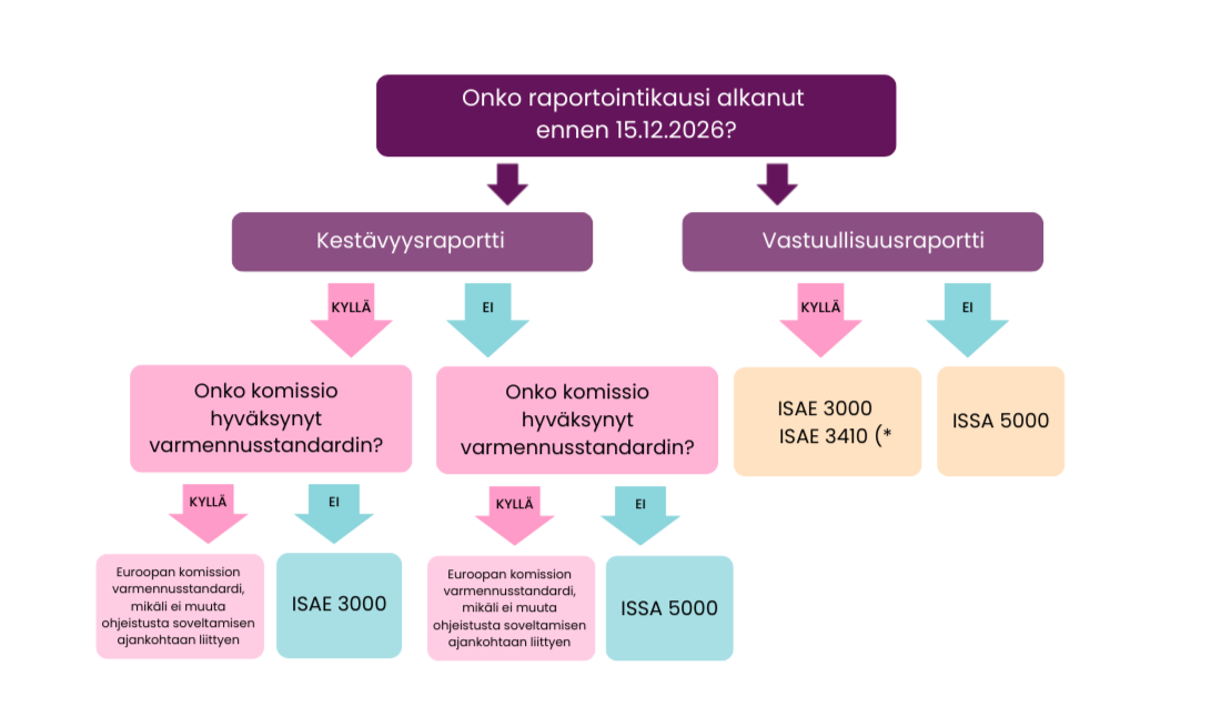 Kestävyysraportoinnin varmennuksen osalta taas aletaan soveltamaan Euroopan komission varmennusstandardia, kun se on hyväksytty. Tämä on käytettävissä aikaisintaan loppuvuodesta 2026.