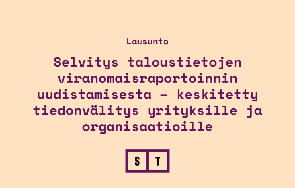Suomen Tilintarkastajat ry on antanut lausunnon selvitykseen taloustietojen viranomaisraportoinnin uudistamisesta (lausuntopyynnön diaarinumero: VH/3261/00.02.00.01/2024). Tuemme taloustietojen viranomaisraportoinnin keskitettyä tiedonvälitystä ja näemme uudistuksessa pitkän aikavälin hyötyjä yrityksille ja viranomaisille. Korostamme kuitenkin, että uudistuksen onnistuminen edellyttää tietojen oikeellisuutta, selkeitä vastuita ja toimivia virheiden korjaamiskäytäntöjä.
