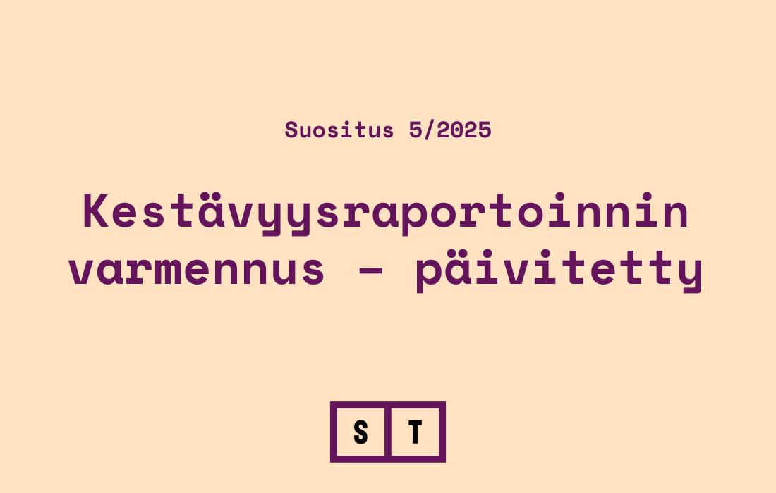 Kestävyysraportoinnin varmennussuositus (5/2025) on laadittu kestävyysraportointitarkastajien käyttöön, ja se on tarkoitettu sovellettavaksi kirjanpitolain 7 luvun mukaan laadittujen kestävyysraporttien varmennuksissa. Suosituksen tavoitteena on kehittää hyvää varmennuskäytäntöä ...